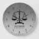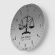 Elégant personnalisez horloge avec des échelles de symbole de justice sur l'arrière - plan de dégradé d'argent graphique.