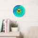 Grande Horloge Ronde Mandala et tournesol bleu turquoise étoilé