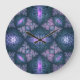 Grande Horloge Ronde motif d'art fractal 3D Turquoise violet rose