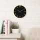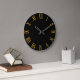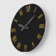 Grande Horloge Ronde Numéros romains dorés Noir