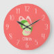 Horloge mignonne murale pour la pépinière ou la chambre de fille dispose de pastèque rose et papillon vert sur arrière - plan rose. Personnalisez avec le nom ou les initiales.