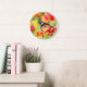 Grande Horloge Ronde Papillon monarque sur Fleur rouge et jaune