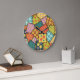Grande Horloge Ronde Patchwork Eclectique : Mélange Motif Diverse