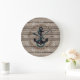 Grande Horloge Ronde Personnalisé Rustic Grey Brown Patiné Plank Motif