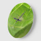 This awesome clock feh a detailed photograph of a little garden spider sitting on a broccoli leaf. The tiny creature is almost transparente. The photograph is detailed you can even see a paires of strands of the spiders’ web.