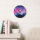 Grande Horloge Ronde Pink & Blue Galaxy & Stars Abstract