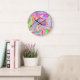 Grande Horloge Ronde Pink, Lime Green et Blue Bubly Art