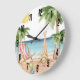 Un thème de plage couleur cool aux tons rose et turquoise, qui donne l'ambiance d'une escapade ou d'une escapade sur la plage. Chaise de plage rose et blanc, parasol, et même un flotteur flamand pour plus de plaisir. Des palmiers qui balancent, des coquillages à ramasser, tout est à propos de ces froides villas tropicales. Avec des polices modernes ajoutant une touche de style. Idéal pour une maison de vacances, ou juste si vous voulez apporter une petite ambiance tropicale dans votre maison. Cute Girly Tropical Plage Aquarelle Côtière Tropicale Grande horloge