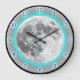 Grande Horloge Ronde Pleine lune Effet lumineux Design Turquoise bleu