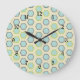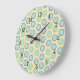 Grande Horloge Ronde Pretty Blue et Lime Green Hexagon Tile Pattern