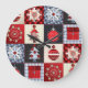 En vichy fantaisie de Noël en bleu et rouge et blanc cassé - de mignons arbres de Noël, des ornements et des flocons de neige décorés de boutons mignons et avec des en vichy et des pois comme arrière - plans pour les carrés. Un design de Noël préféré pour les fermiers et les familles cabines de campagne. Aucun vrai bouton ou tissu de courtepointe n'est sur ce produit, il est artistiquement créé pour ressembler à une courtepointe.
