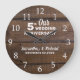 Grande Horloge Ronde Rustic Dark Brown Wood 5e anniversaire Mariage