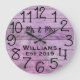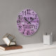 Beautiful, unique, one-of-a-enfant personnalized design a purple wood with flowers and black personalized his and her names in a script overlay design and the last name and year established in a bold script with a purple floral background. Personalize this clock by adding your information personnel. Makes a great wedding, anniversary, ou housewarming venin. Click "personalize this matriplate" to change the names, fonts, and colors to create a unique of a childesign. What an elegant, rustic accessoire for your living room, menacé, or family room. If you need any help with customization please email me at ybnormone @gmail.com Thanks for stop by www.zazzle.com/Personal_Creations ©Karen Hall for Personal_Creations at Zazzle