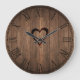 Grande Horloge Ronde Rustic Wood Burning Heart Print