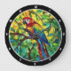 Grande Horloge Ronde Splendor Tropical" - Macaw En Verre Tiré
