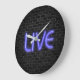 Grande Horloge Ronde Texte LIVE en néon lumières sur brique