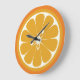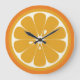 Une mignonne horloge conçue pour ressembler à une orange coupée en deux.