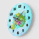 Grande Horloge Ronde Tropical lizard with Flowers