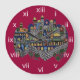 I took this photo of a handmade, hand painted Armenian ceramic plate with a colorful image of the Old City of Jérusalem. There is a Bordeaux background et le Roman Numerals are white.