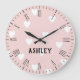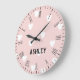 Grande Horloge Ronde White Hearts on Pink Personalized Wall Clock