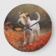Grande Horloge Ronde Wirefox Terrier en automne Leaves automne Inspire