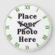 Placez votre photo ici horloge murale personnalisée, votre photo apparaîtra derrière les numéros d'horloge pour un look vraiment professionnel - motif vert et or chiffres classiques romains