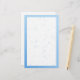 Cette papeterie comporte un motif des bulles et d'une frontière bleue.