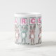 Bouchon cadeau personnalisé avec lapins de dessin animé. Amusant tasse pour quelqu'un avec un nom de 6 lettres. Amusante Tasse blanche avec illustration de lapins en rose et bleu. Les lapins tiennent des cartes pour épeler le nom.