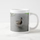 Cette énorme tasse présente la photo d'un drôle de canard marchant à travers un chemin en béton. Cet oiseau excentrique était sorti d'un étang et était à la recherche de pain dans un parc tranquille.