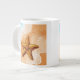 Boug géant dans une aquarelle illustration d'une étoile de mer avec des détails texturés, reposant sur une plage de sable avec des vagues douces et une brune de bleu océan. Le mélange des tons chauds et de l'eau cool lui confère une atmosphère de plage décontractée.