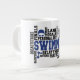 Jumbo Certains jours, une tasse de joe de taille régulière ne le fera pas. Quand vous avez besoin d'une dose de caféine en plus, utilisez votre tasse XL de Zazzle. Peut contenir jusqu'à 591 ml. Idéal pour des soupes, céréales, glaces et du chili aussi ! Cette tasse géante à une anse en forme de C pour une utilisation confortable. Dimensions : Hauteur : 4,5" Diamètre : 3,9" Capacité : 20 onces Micro-ondes et lave-vaisselle sans danger Construction céramique forte Satisfait ou dépasse les exigences de la FDA en matière de salubrité des aliments et des boissons Conseil du concepteur : Pour assurer l’impression de haute qualité, veuillez noter que l’aire de conception personnalisable de ce produit mesure 4" de haut x 10,5" de large