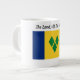 La tasse affiche les couleurs nationales du drapeau de Saint-Vincent-et-les Grenadines avec les trois diamants au centre. Disponible en 11 onces ou 15 onces Dimensions : 11 onces : 3,2 po D x 3,8 po H 15 onces : 3,4 po D x 4,5 po H Construction solide et céramique Lavage à la main recommandé; micro-ondes et lave-vaisselle ne sont pas recommandés en raison du revêtement spécial thermosensible qui donne à cette tasse sa magie