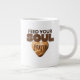L'image de spécialité Mug comporte l'expression "FEED YOUR SOUL" avec le mot "SOUL" mis en surbrillance dans une grande police orange foncée qui chevauche légèrement le texte "FEED YOUR". En dessous de ce texte se trouve l'image d'un pain en forme de coeur, avec le mot "PRIÈRE" écrit sur le pain dans une couleur brun foncé, ressemblant à la texture et la couleur de la croûte cuite.