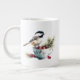 This cozy coffee mug features a sweet chickadee perched on a teacup, surrounded by soft greenery and red berries for a warm, comforting feel. The gentle watercolor style makes it perfect for enjoying morning coffee, afternoon tea, or a quiet moment with your favorite warm drink.