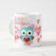 Tableau original de deux chouettes, l'un rose pour une fille, l'autre bleu pour un garçon et floral aquarelle fleurs rose fleurit arrière - plan. "Je t'aime avec le hibou mon coeur" et "Le hibou t'aime toujours" citent. Vous pouvez aussi personnaliser avec un nom ou une expression de votre choix. Tasse à café Jumbo.
