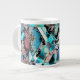 An intricate geometric pattern featuring a mix of triangles and lines. The composition includes a vibrant array of blues, pinks, and blacks.