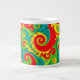 Cette tasse à café a un design psychédélique coloré et lumineux.