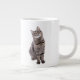 Un adorable chat tabby domestique rayé gris levrette regardant vers le haut, découpé sur un arrière - plan blanc