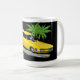 Grande tasse de café comportant la voiture drôle de moteur arrière de BackMotor, dans un arrangement tropical ! !