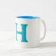 Il s'agit d'une grande tasse de café avec la lettre H en bleu et un intérieur bleu