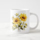This jumbo size mug is shown in white with a pretty floral sunflowers watercolor print. Customize this item or buy as is.