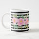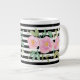 Profitez de votre boisson chaude préférée dans cette belle tasse aux fleurs roses en aquarelle et rayures noires et blanches.