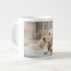Mug avec l'image d'un Golden Retriever allongé sur son coussin sur le porche extérieur.