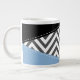 Grande Tasse Gris Zigzag, Gris Chevron, Motif Zigzag, Bleu