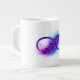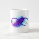 Infinity symbole with a beautiful feather painted in purple and blue bright colors on white background