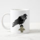 Un corbeau noir à jet trône au sommet d'une flèche de l'église Fleur-de-Lis. J'adorerais voir ce design dans la nature ; étiquetez-moi sur Instagram @parry_vegan