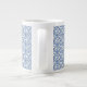 Cette charmant tasse de style jumbo est présentée en blanc avec un design d'impression damassé bleu. Customisez cet objet ou achetez tel quel.