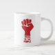 Cette oeuvre d'art présente un poing rouge levé et les mots Pouvoir au Peuple.