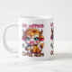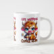 A funny and sarcastic design showcases a cute highland cow sitting with a beautiful white daisy and a to-go coffee cup. The cow, with big blue eyes and a serious expression, sports a lipstick kiss on his cheek and vibrant orange-and-white fur. The colorful text reads, "Life happens, coffee helps." This design is available on various products, making perfect gifts for coffee lovers.
