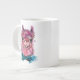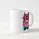 Ce design présente un joli portrait aquarelle d'un lama en éclats d'aquarelle rose et bleu.
